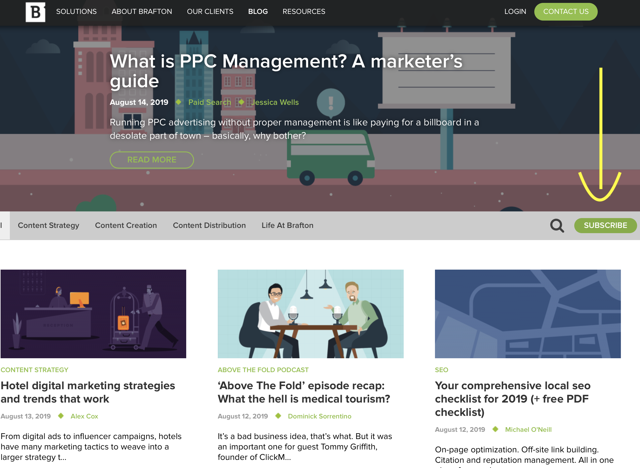Now you have your short-term goal. The content you might use to address that goal would include CTA banners embedded in your blog posts, a website redesign, and other strategic graphical elements to encourage more subscribers, like so: