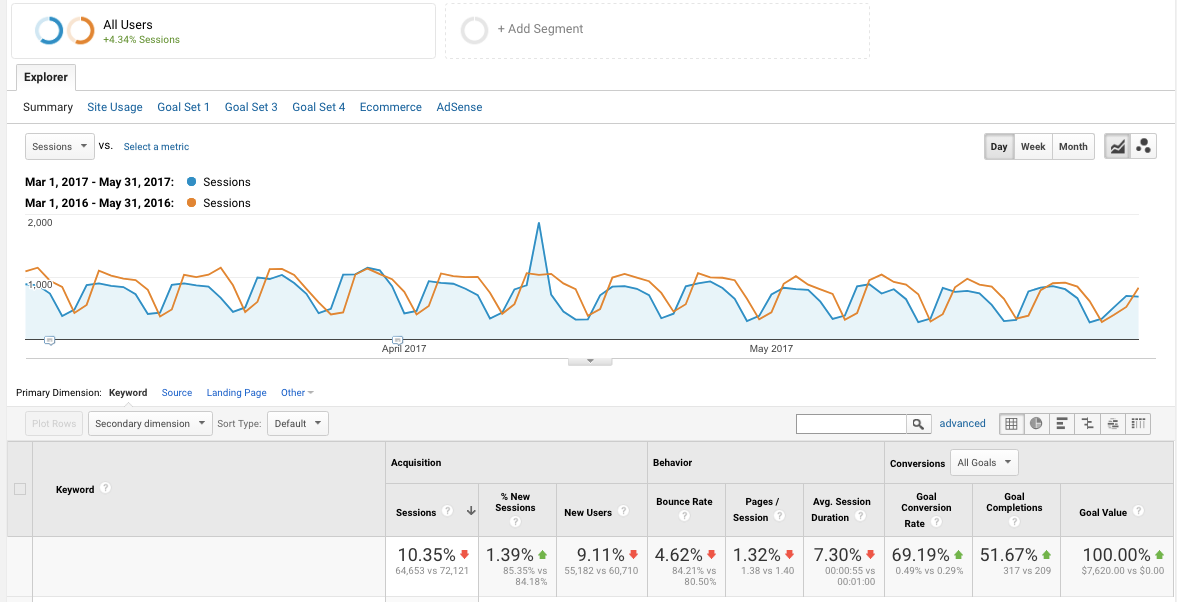 What if I told you that we have increased our inbound leads by 150 percent over the same time period, year over year? And what if I also told you that we killed off some of our high-volume but informational-intent keywords in favor of lower-volume, transactional-intent keywords?