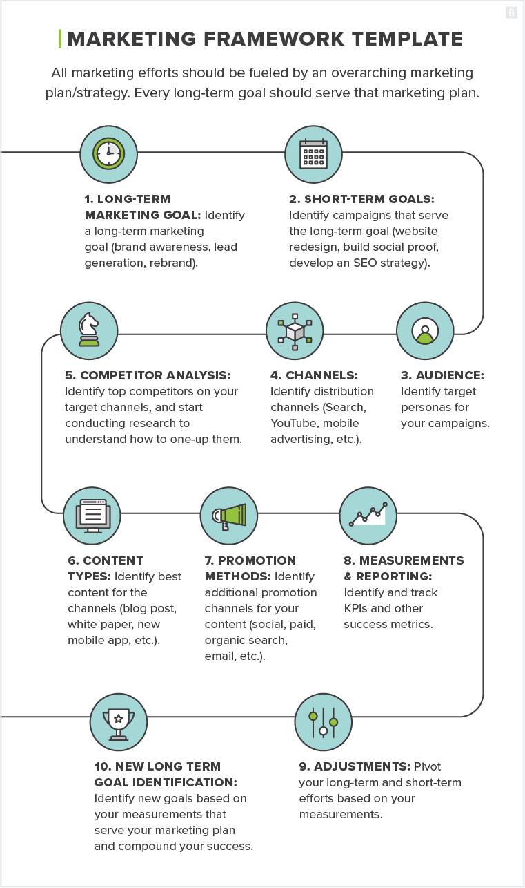 Your marketing framework organizes those long- and short-term goals into a well-defined set of stages and processes.