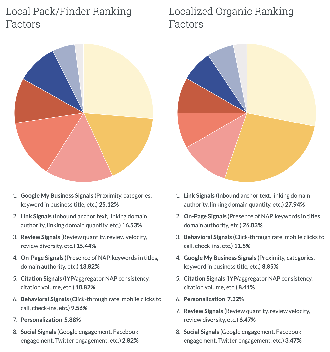 Conveniently, Local Pack uses the same combination of key ranking factors as organic local SEO, just in a different order: