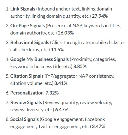 As you can see, a lot of the core ranking factors that marketers are used to are still in play. Things like anchor text, inbound links and click-through rates are very important regardless of local or nonlocal context, and they likely always will be. But what’s different here is how impactful other factors are, and their relation to location.