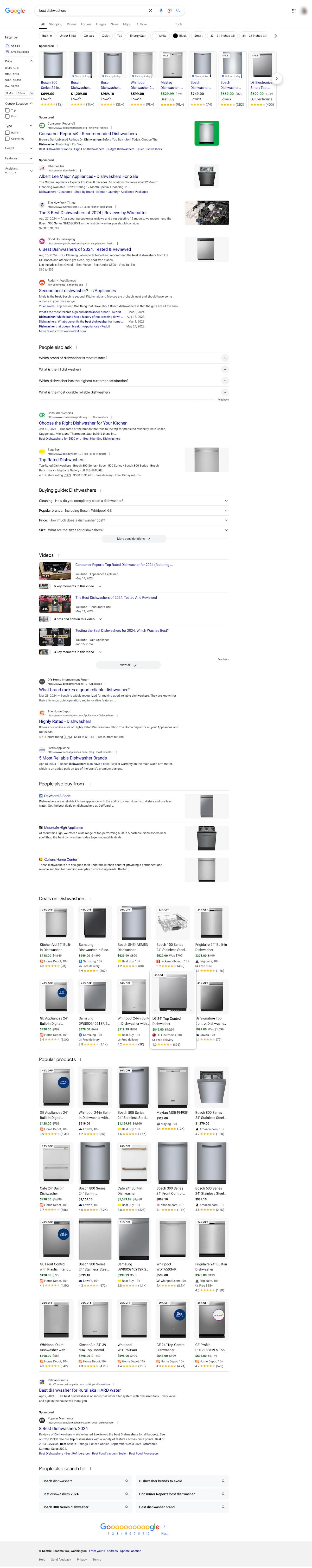 Searching “best project management software” results in 5 blog posts comparing the best project management tools, and 5 product landing pages from companies that provide project management software.