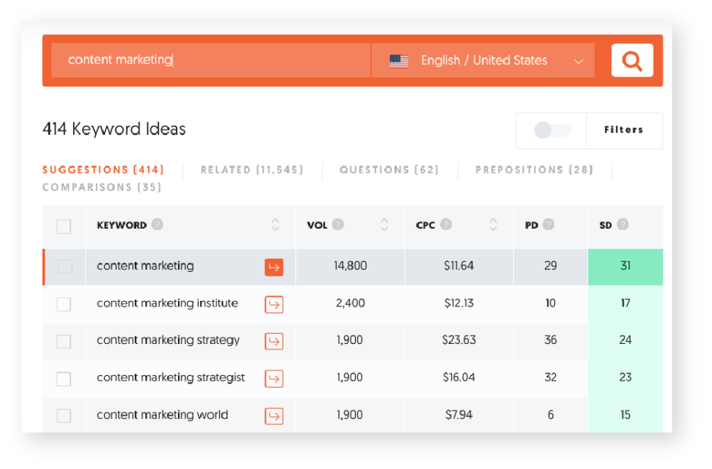 Here’s how: We can see that the keyword “content marketing agency” is searched 4,000 times per month in the U.S.
