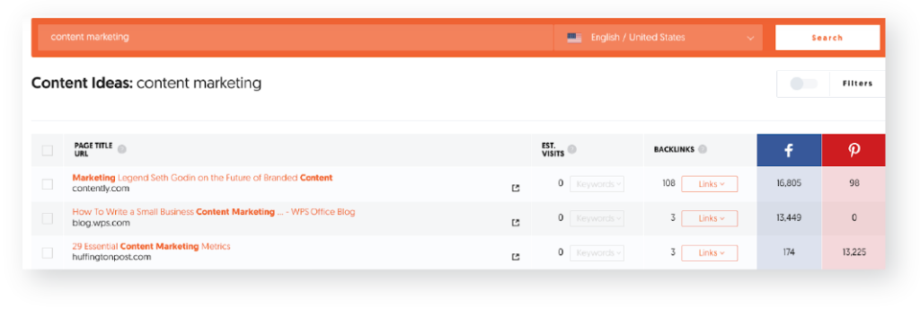 But the pages that rank in the top-10 results for “content marketing agency” rank for an average of 267 total keywords. Furthermore, those keywords drive an average of 1,290 visitors per month.