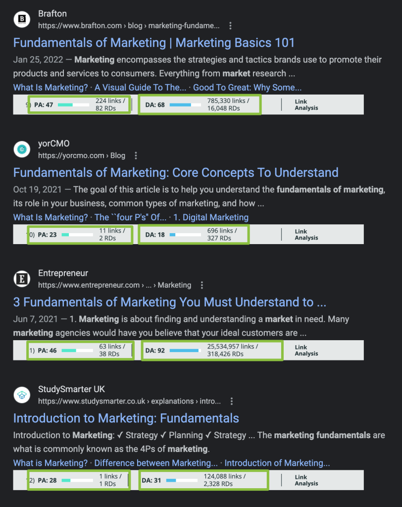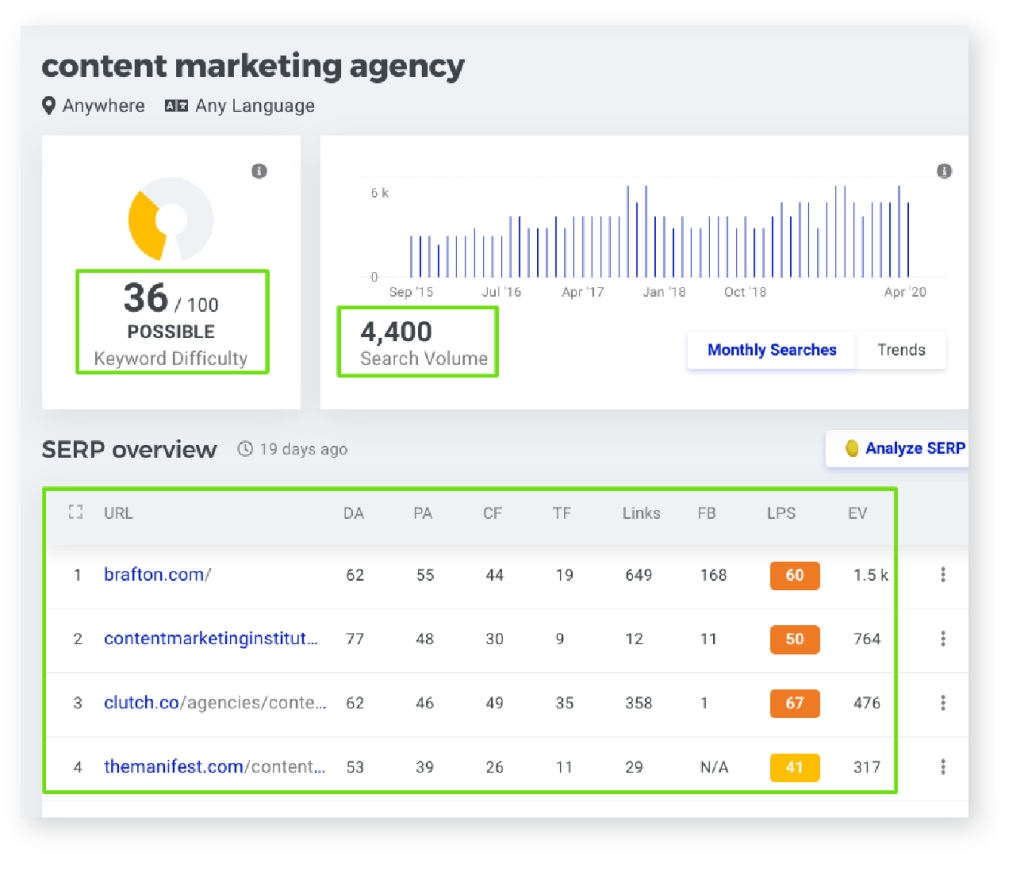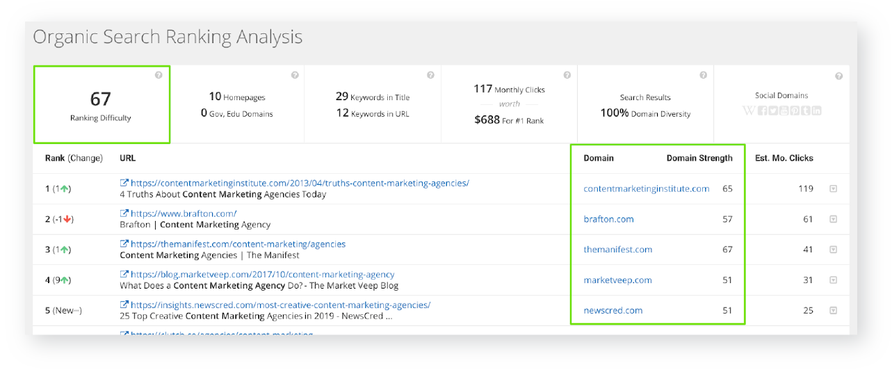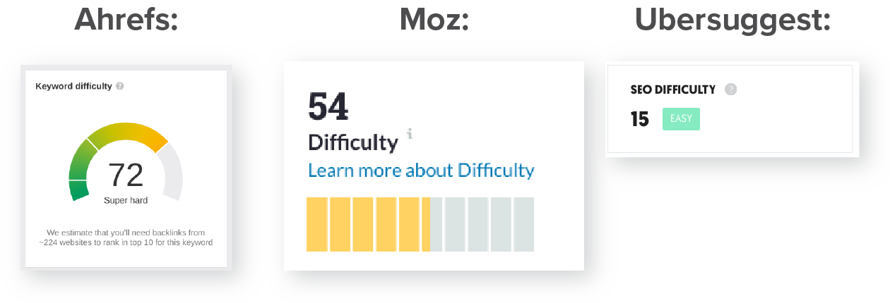 Let’s revisit the keyword difficulty section of this guide. Any of the paid tools you’ve chosen calculate average keyword difficulty scores by evaluating the actual pages – and their domains – that rank on the first page of results for a keyword. But you need to keep in mind that keyword difficulty scores are just a best guess by that tool.
