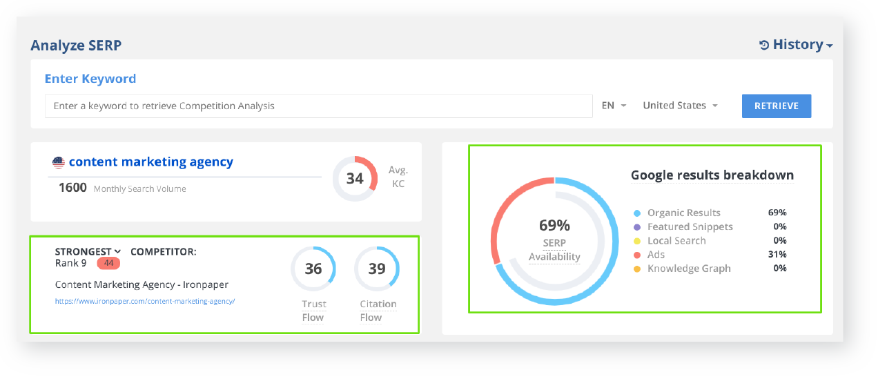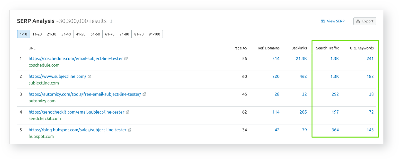 Add metrics to your investigation by using the SERP inspection tools available in your paid tools, reviewed previously.