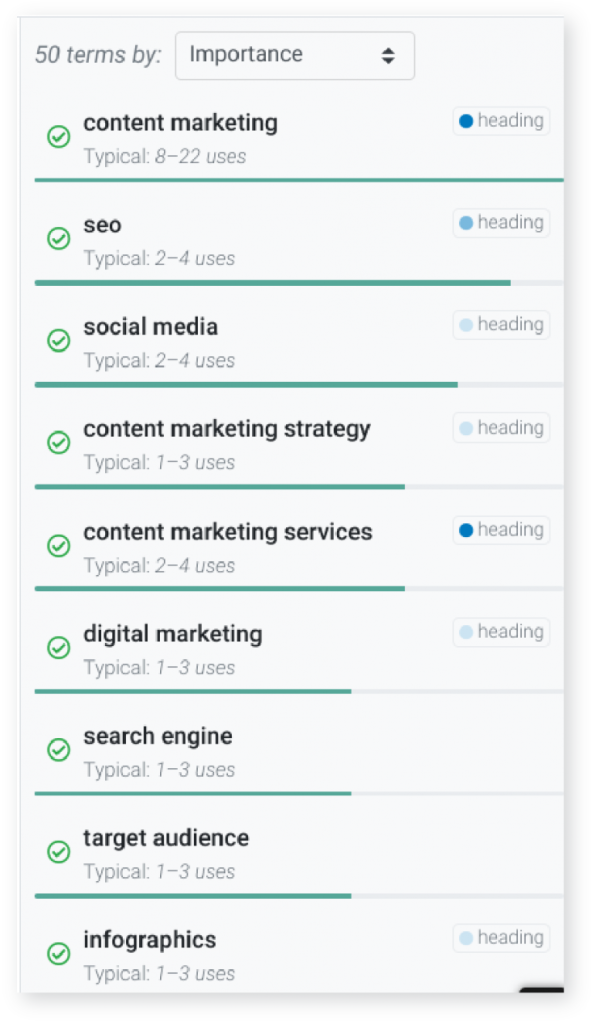You can get this information manually, or by using a high-powered tool like MarketMuse, or a writer-friendly tool like Clearscope. These tools will show you how well you covered all the potential sub-topics searchers are looking for and what areas you may need to improve in.