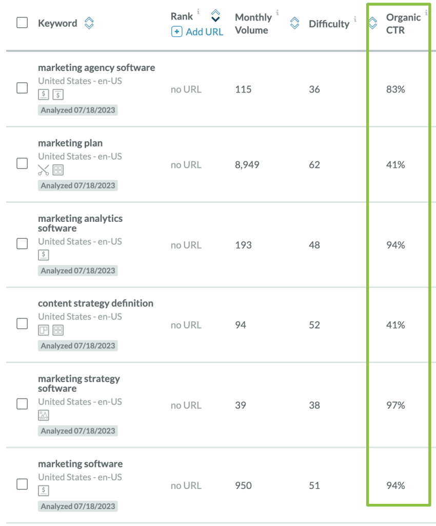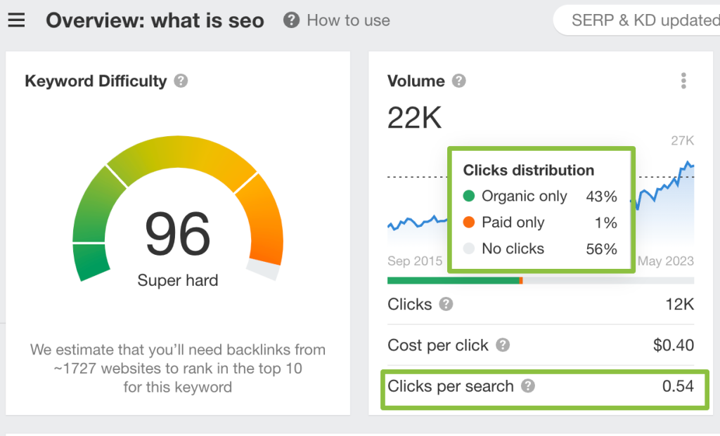 While the keyword difficulty score reported to you is technically accurate, it reads as a bit of a false positive because you’ll likely rank no better than position 4, which is respectable, but there is a big difference between a CTR of 32.5% and 6%.