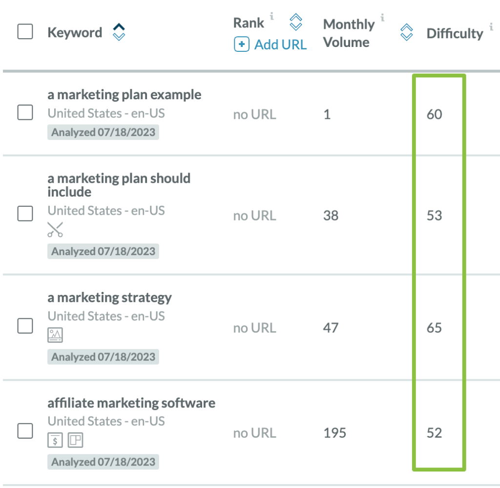 Tip: Keyword difficulty scores can send false positives or false negatives. Imagine seeing data like the following for your target keyword: